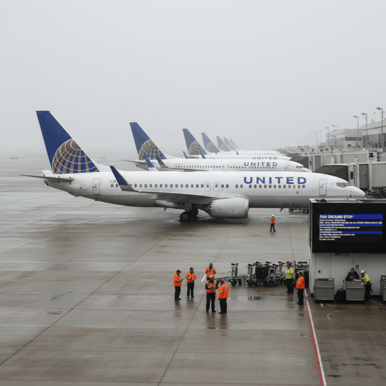 United Airlines is trimming schedules after an FAA shutdown order, cancelling about…